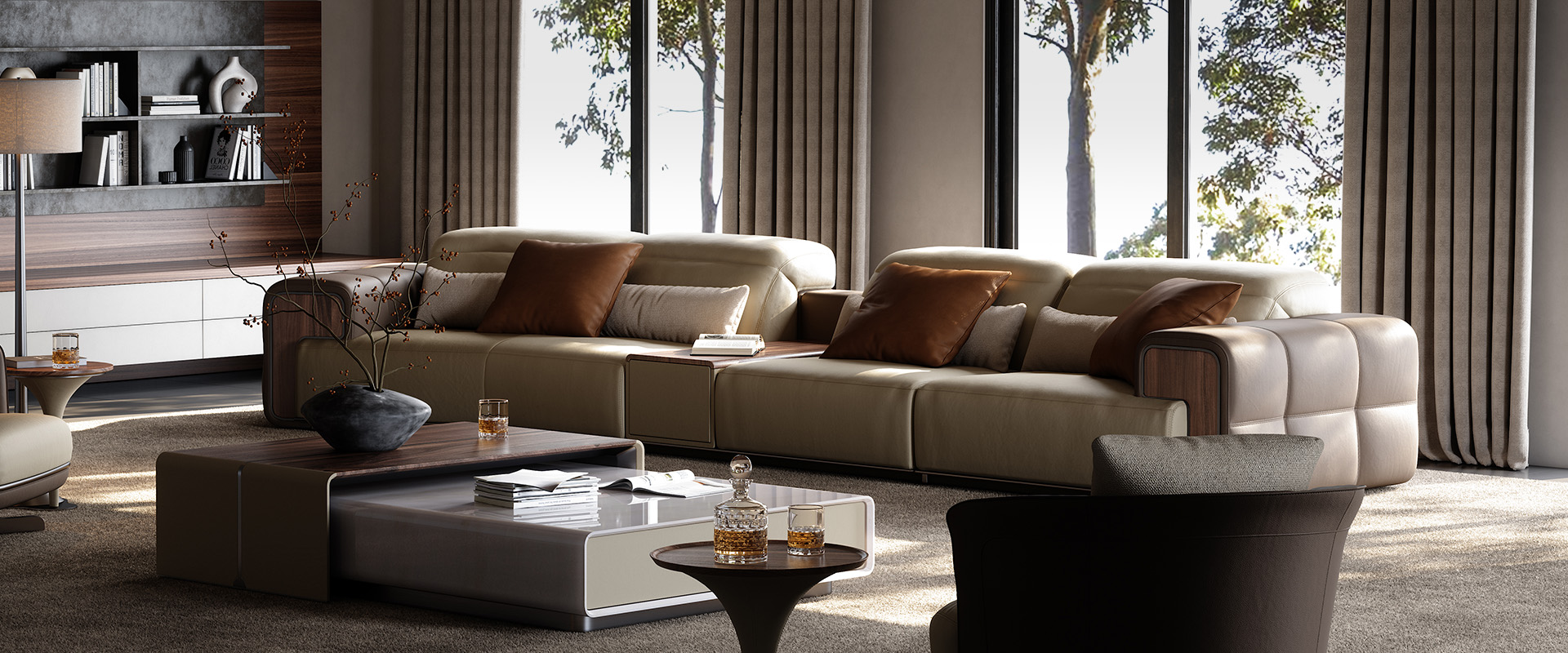 回归本真,自然美学,甄选进口优质真皮、南美胡桃木、北美白橡木,黑钛金不锈钢金属等材料,我们将以手工工艺的方式把对生命的感知和对自然的崇敬,融入到家具当中,一皮一木一金,有家的厚重、更有爱的温暖,让家居生活更自然纯粹。 |